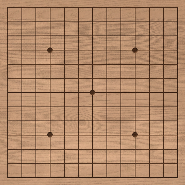 Surround the largest area(s) of the 13 by 13 board with your stones to win