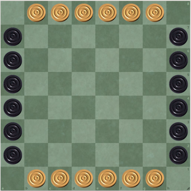 Lines Of Action is a stand-alone game, invented by Claude Soucie in 1969. The game is played on an 8x8 board with the following setup: